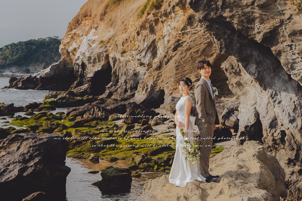 海と岩場、自然の表情がダイナミックに広がる城ヶ島は、前撮りやウェディングフォトでも人気の高いロケーションです。