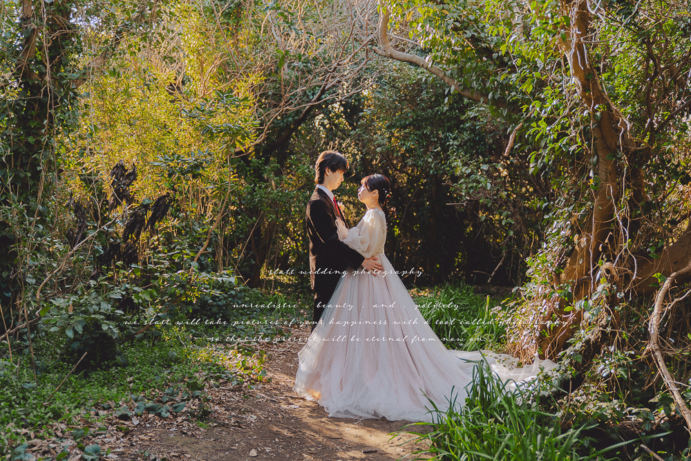 自然のスケール感を活かしながら印象に残る前撮りを残しました。