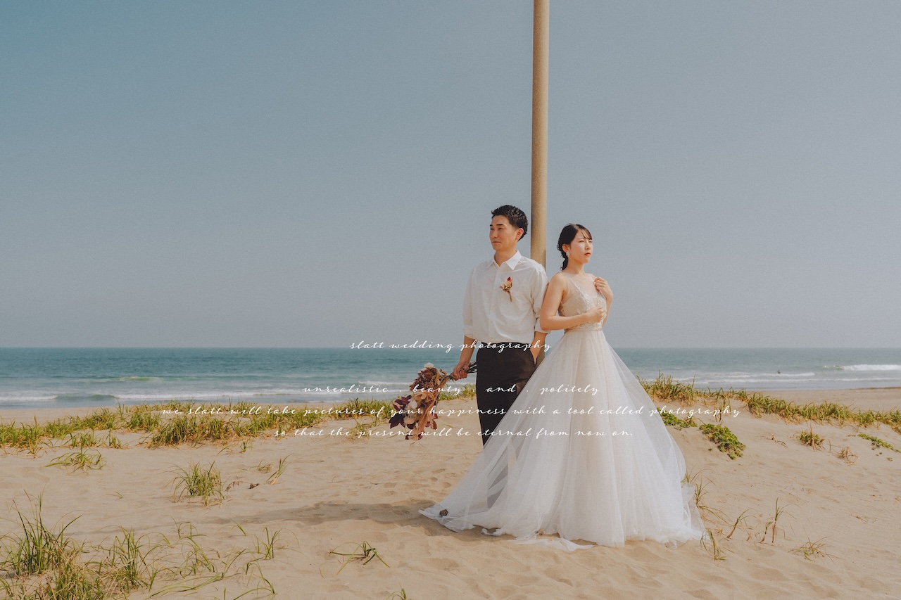 ナチュラルにも撮れる九十九里浜ですが、晴れの日は特にキメた前撮りとも相性のいいロケーションです。開放感はありつつ、画としての完成度を求めたい方におすすめです。