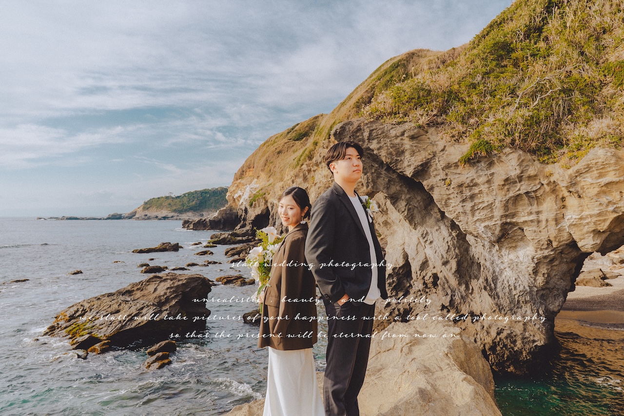 城ヶ島は自然が強いロケ地なので、シンプルなドレスほど映えます。
