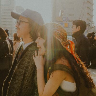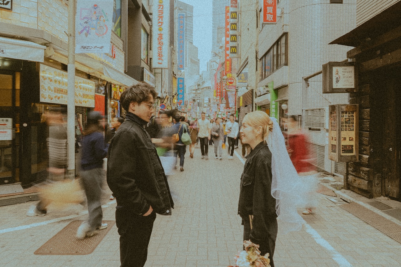 街の流れを止めず、その中に二人を置く感覚で撮影。